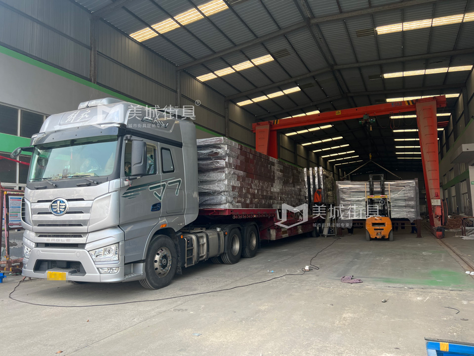江蘇美城街具為新疆定制第六批候車亭公交站臺發(fā)貨案例